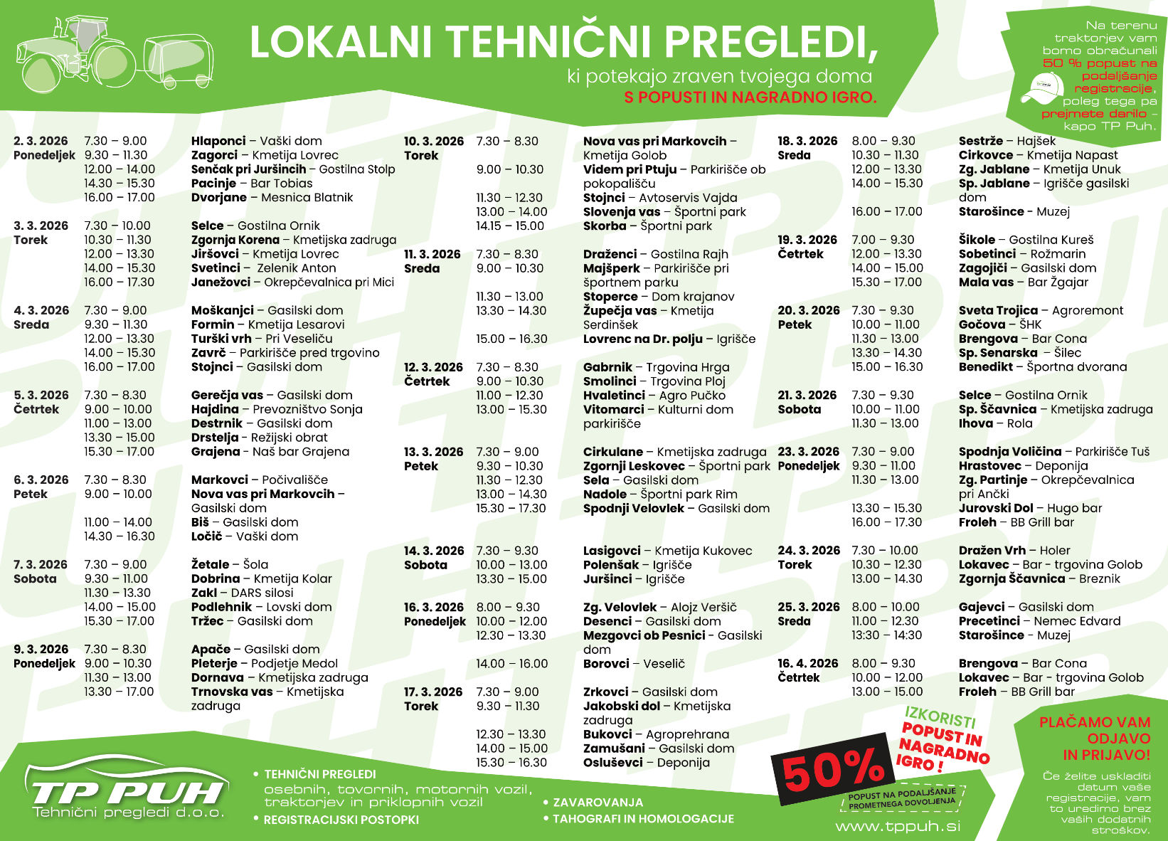 TP PUH, tehnični pregledi, d.o.o., Puhova ulica 8, Ptuj, 2250 Ptuj. Telefon: 064 295 810. E-naslov: [email protected]. Matična številka: 9529721. Davčna številka: SI43334059.
